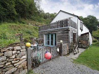 This extension to the main house provides double doors leading from a small outside area into a large downstairs space. This incorporates an open plan kitchen/diner lounge, with inglenook fireplace with wood stove. There are two sofas providing ample space to relax and enjoy the fire. There are is a spiral staircase leading into a large double bedroom that has ample furniture and great sea views, the bedroom leads onto a balcony with amazing sea views. The bathroom has a shower and can be accessed from the bedroom or stair hallway via 'Jack and Jill doors'.